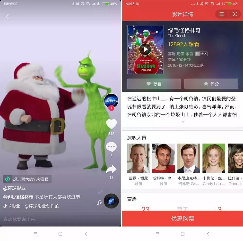 近日,有用户发现在抖音Android最新3.6.0版本中,短视频左下方出现了小程序入口。比如在@环球影业最新的抖音视频中,点击左下方标亮的小程序即可跳转到猫眼购票页面,iOS目前暂未发现小程序入口。
