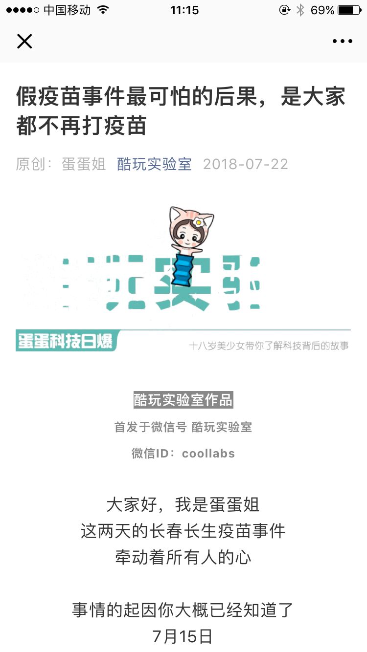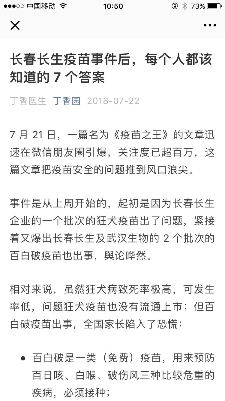周六(7月21日),随着原南方周末记者兽爷的文章《疫苗之王》刷屏,长春长生生物公司的问题疫苗事件暴露在公众面前。目前此文章已被删除。