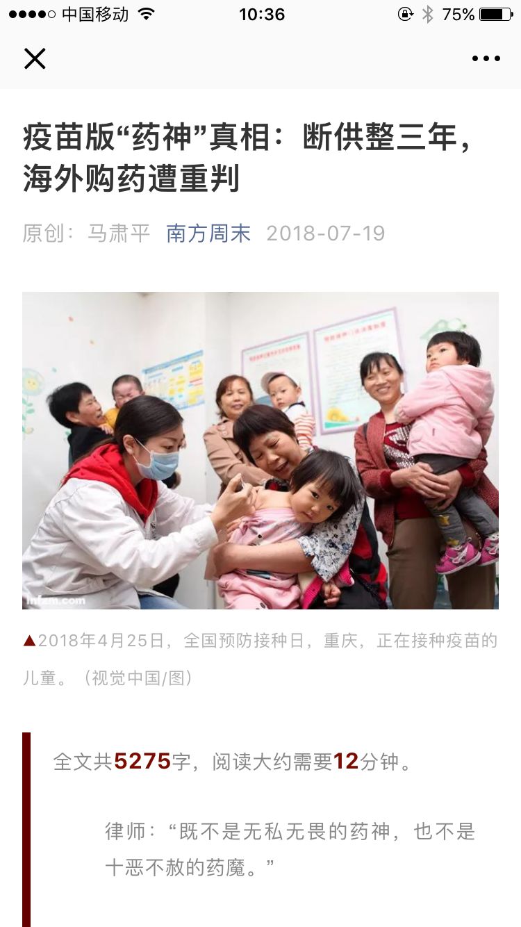 疫苗用药难不禁让人联想到近日热映的电影《我不是药神》,南方周末发文《疫苗版“药神”真相:断供整三年,海外购药遭重判》,讲述了疫苗版“药神”的故事。