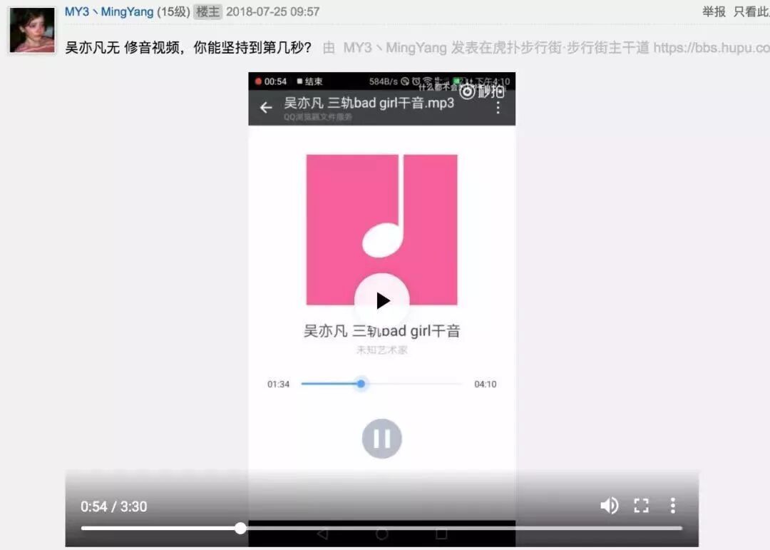 昨日上午早上9点57分,在虎扑的步行街论坛发帖,称该视频是吴亦凡的无修音现场。
