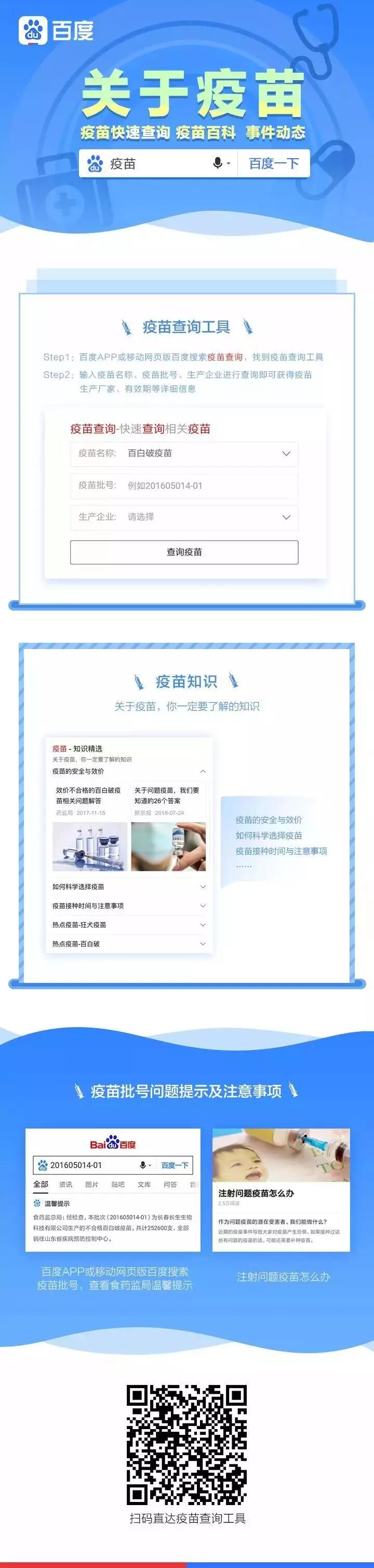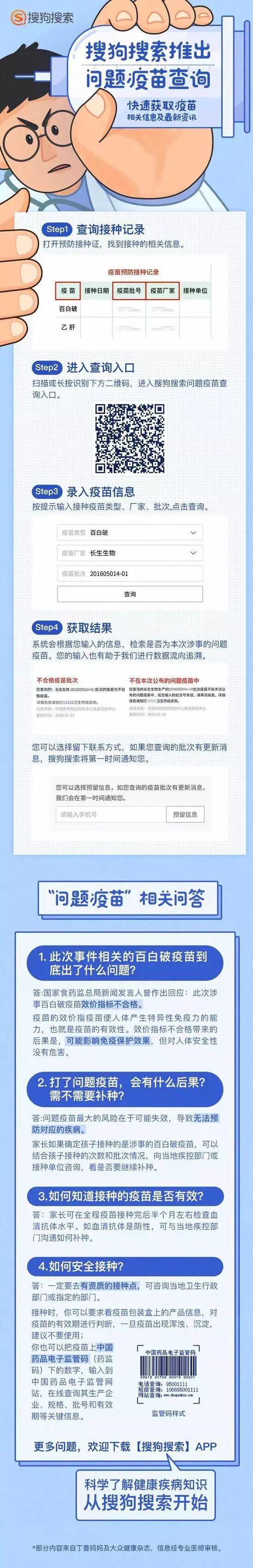 随着疫苗话题急速升温,人们对疫苗真假无从判断产生了焦虑心理。各大公司都先后对外发布了问题疫苗查询搜索工具。