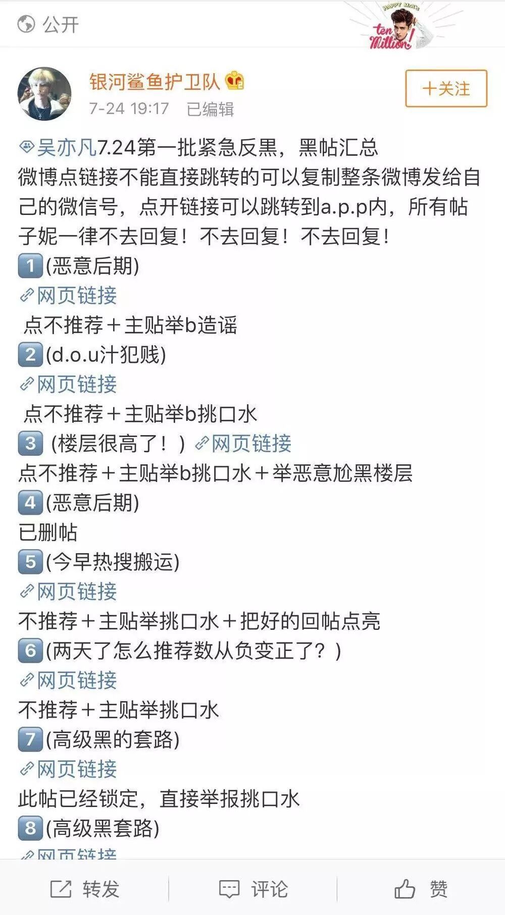 本以为只是一个普通的日常吐槽贴,但在帖子发布一小时后,有人发现吴亦凡的粉丝在微博发布征集令,准备杀进虎扑定向踩和举报嘲笑吴亦凡的帖子。