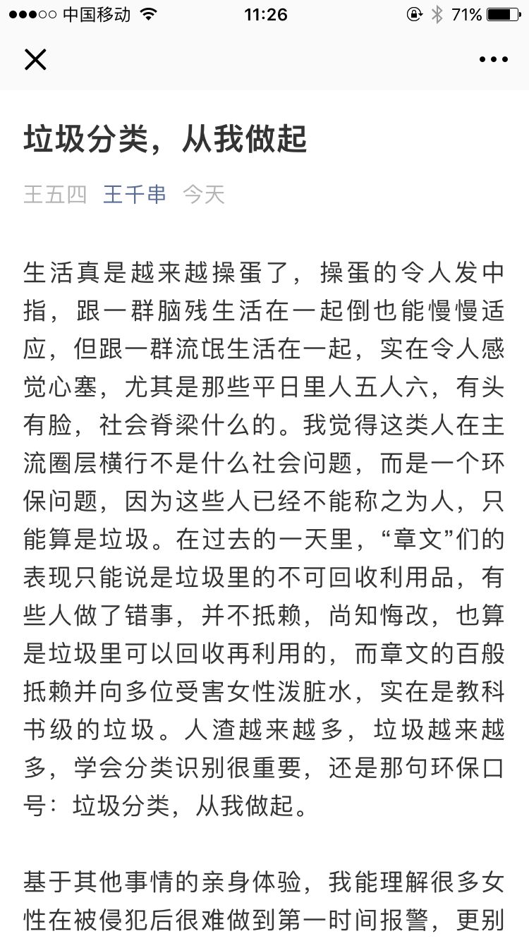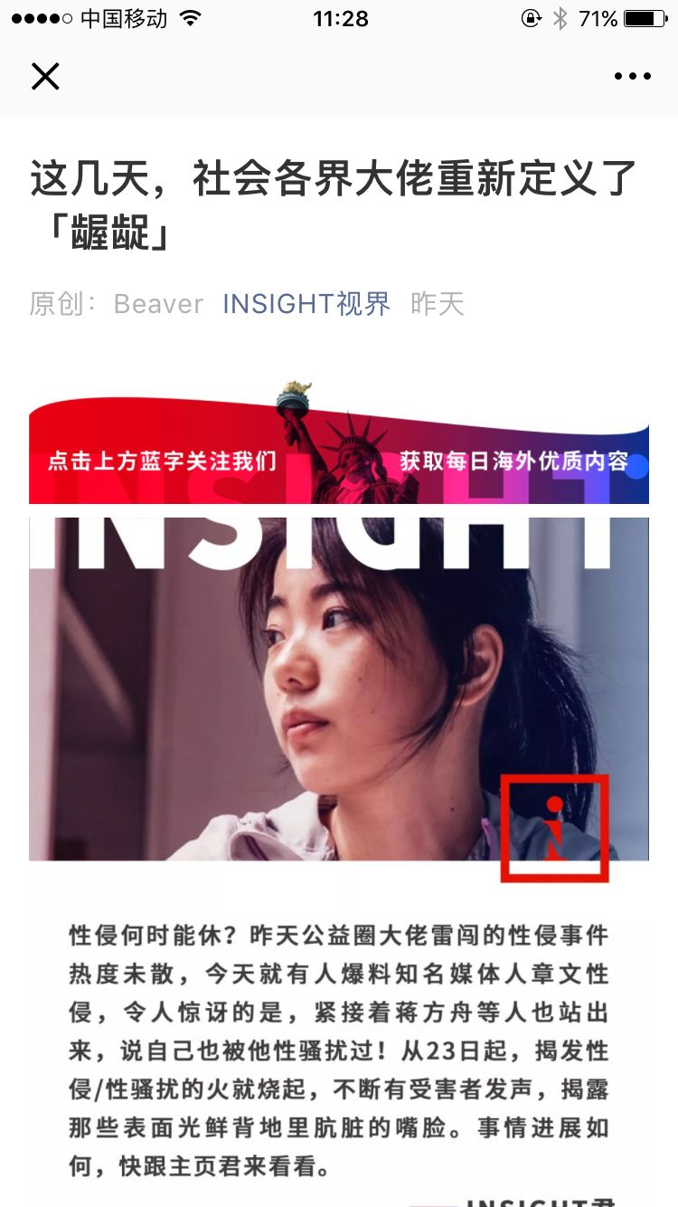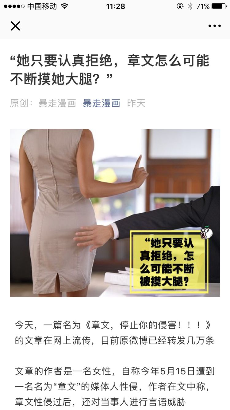 随着“雷闯性侵事件”、“章文性侵事件”、的爆发,#ME TOO#运动也在持续发酵,越来越多的受害者站出来讲述自己的遭遇,希望能将依然逍遥在外的性侵犯们依法处理。