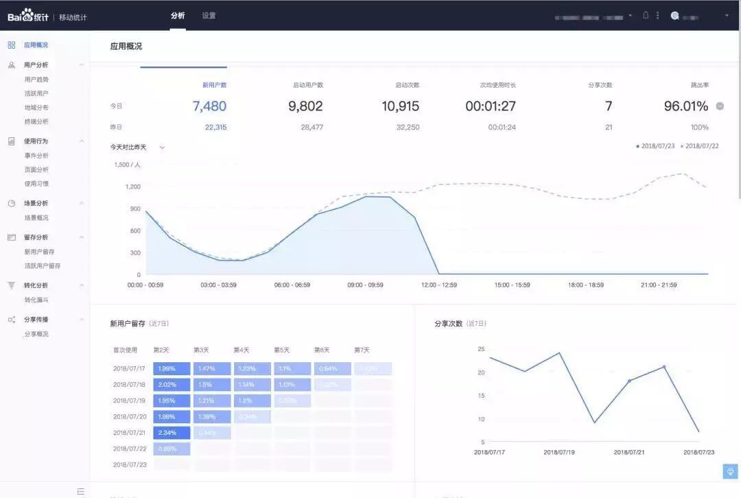 百度统计为微信小程序提供统计分析方案,可以帮助分析小程序的用户来源、用户构成、用户增长趋势、用户留存与转化、用户小程序使用行为习惯等一系列问题。