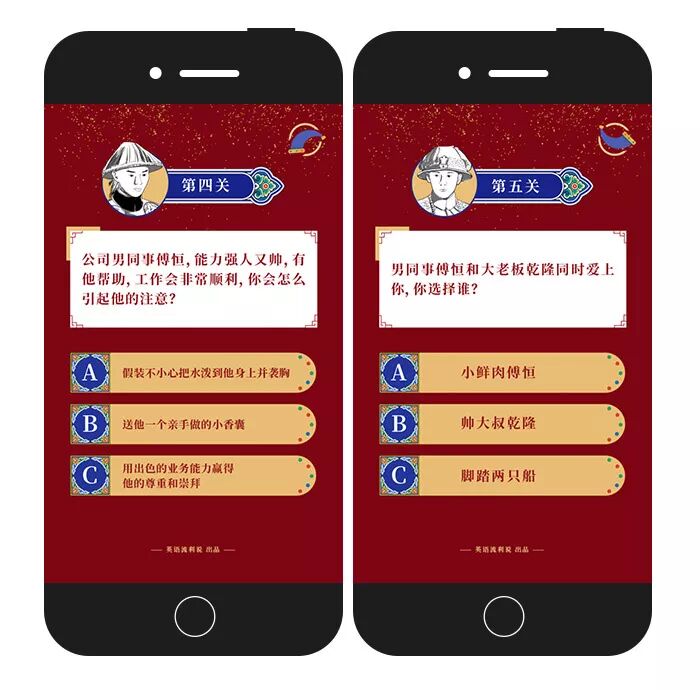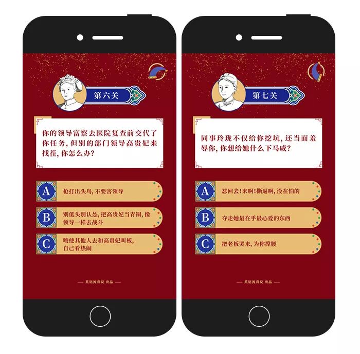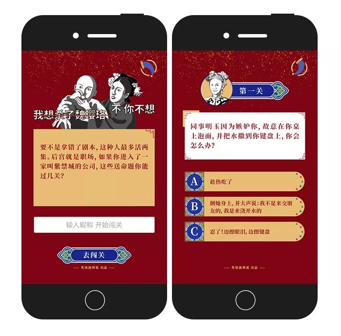 最近,英语流利说上线了一个H5,将《延禧攻略》里的情节改编成职场版,面临重重难关,必须与同事斗智斗勇才能上位。现在,你拿到了剧本,要进入一家叫“紫禁城”的公司,马上来答题,看看你能活到第几集。