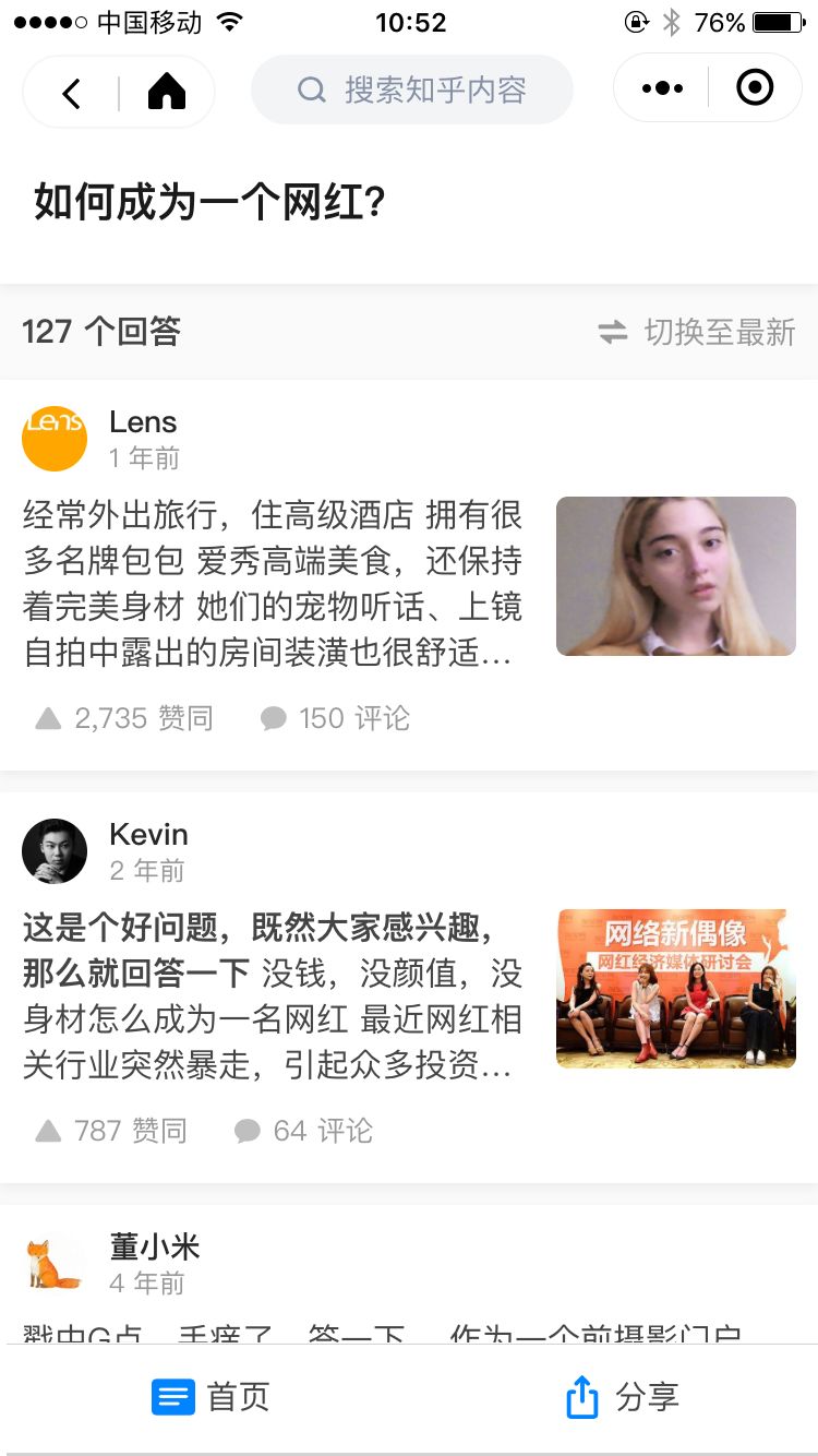 因为客观的收益,国内各大社交平台上也聚集了不少想要进入网红圈的年轻人们,想要成为papi酱、冯提莫、张大奕这样的堪比明星的网红。在知乎上,还有网友发起了各式各样关于如何成为网红的话题。