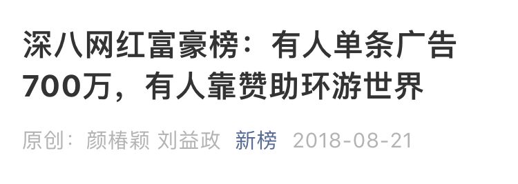 昨日新榜公号发布了文章《深八网红富豪榜:有人单条广告700万,有人靠赞助环游世界》,细数了目前Instagram最赚钱的人,还分析了他们使如何赚钱的。