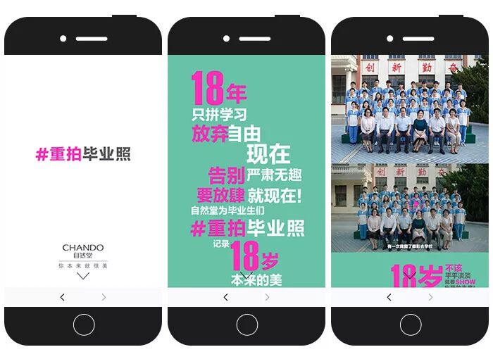 自然堂推出#重拍毕业照#的话题活动,邀请2018届毕业生们重拍一张“不一样”的毕业照,鼓励他们撕掉标签,放肆做自己,展现18岁本来的美丽。